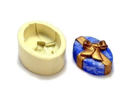 Molde de silicone Caixa Oval Presente (1 cav.), cód. 3789 para fins artesanais.