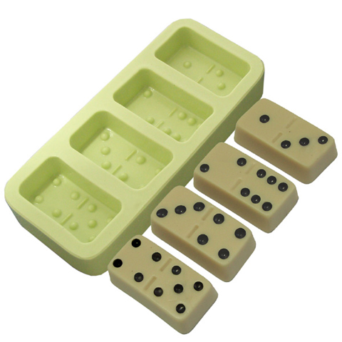 Molde de silicone Dominó (4 cav.), cód. 4787 para fins artesanais. Peso Médio do Molde de Silicone: 135 gr Medidas aproximadas do produto final: 4,5 cm comp. x 2,5 cm.larg. x 1,5 cm alt. Peso aproximado do produto final: Ex: Glicerina: 12 gr cada Ex: Parafina: 10 gr cada