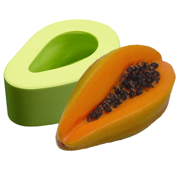 Molde de silicone Mamão Cortado Mini (1 cav.), cód. 4479 para fins artesanais.