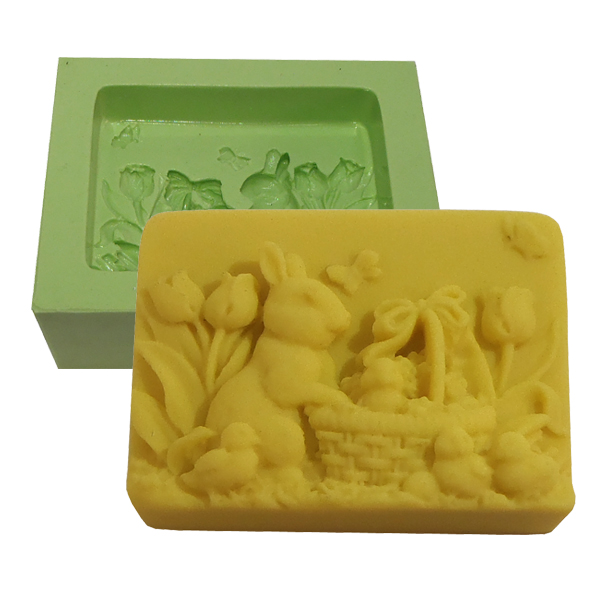 Molde de silicone Retangular coelho no jardim (1 cav.), cód. 7349 para fins artesanais.